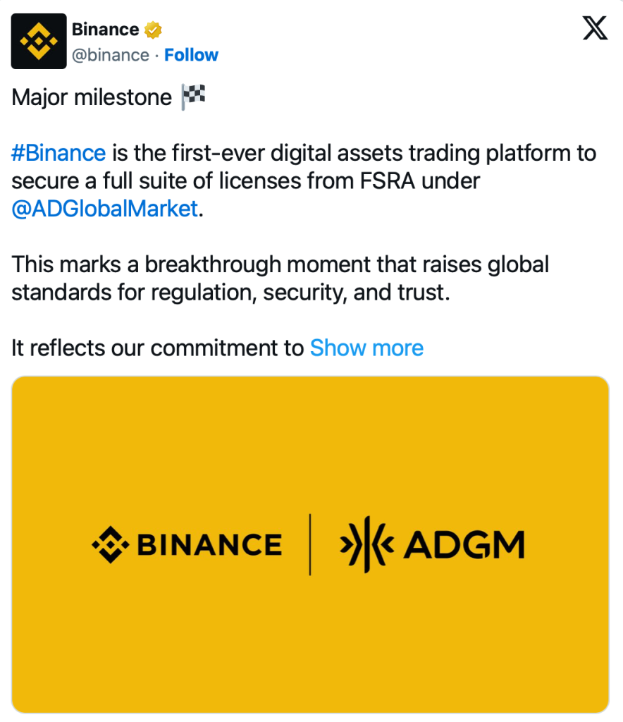 Die FSRA ist für höchste Standards bei Transparenz, Risikomanagement, Sicherheit und Verbraucherschutz bekannt. Dass Binance alle Kernlizenzen - darunter Handel, Verwahrung, Brokerage und operative Beaufsichtigung - erlangt hat, zeigt eine klare regulatorische Weiterentwicklung der Plattform.