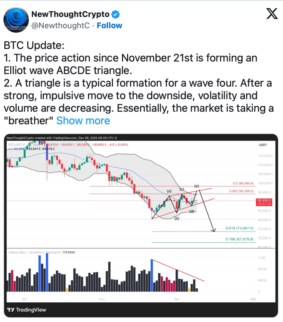Die Charts zeigen eine deutliche Zusammenziehung der Volatilität. Die Bollinger Bänder nähern sich stark an, ein Muster, das häufig einer impulsiven Kurswelle vorausgeht. Parallel dazu sammeln sich oberhalb und unterhalb der aktuellen Range große Liquiditätspuffer an - ideale Voraussetzungen für eine starke Bewegung, sobald ein Trigger die Seitwärtsphase löst. Mit fallenden Liquidationen deutet zudem wenig auf aggressives Positionieren hin, was meist eine Ruhe vor dem Sturm signalisiert.