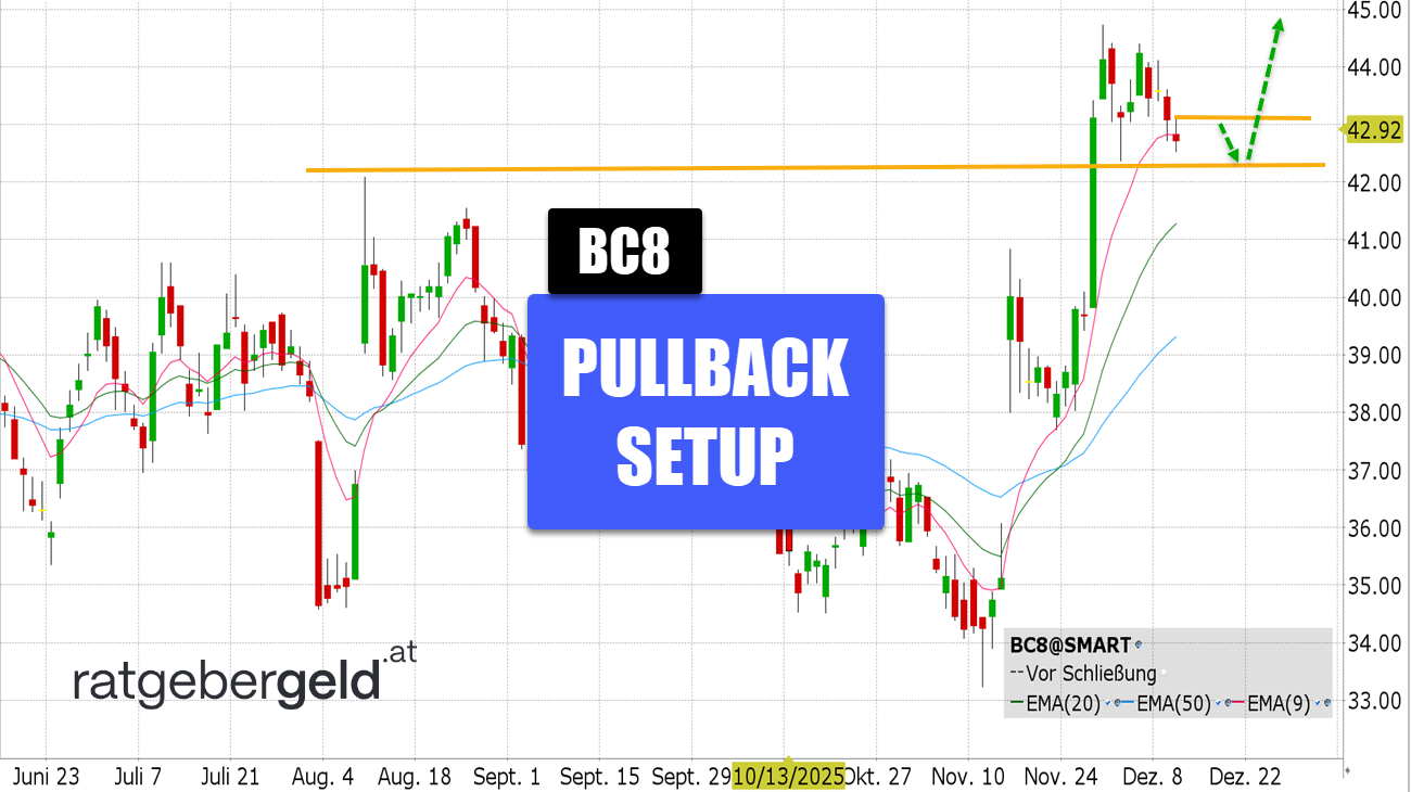 Der IT-Dienstleister Bechtle meldet für das dritte Quartal 2025 deutlich bessere Zahlen als erwartet: Das Geschäftsvolumen stieg im Jahresvergleich um 8.4 Prozent auf 2.05 Milliarden EUR, der Umsatz erhöhte sich um 5.1 Prozent auf 1.59 Milliarden EUR und das Vorsteuerergebnis legte auf rund 80.5 Millionen EUR zu. Aufgrund dieses unerwartet starken Ergebnisses setzt Bechtle nun auf einen kräftigen Schlussspurt im vierten Quartal - mit einem Ziel: um die Jahresziele zu erreichen, müsste das Vorsteuerergebnis nochmals um etwa ein Viertel steigen. Analysten sehen das ebenfalls positiv: Das Haus Jefferies behielt die Bewertung "Buy" mit Kursziel 48 EUR bei - gestützt von der starken operativen Leistung und optimistischen Einschätzungen für das kommende Quartal. Noch klarer äußert sich Kepler Cheuvreux: Unter 27 europäischen Konkurrenten kürt das Analysehaus den Konzern zum "Best Sector Pick". Grund: Bechtle ist nach den jüngsten Quartalszahlen wieder organisch gewachsen und steht bestens da, um vom steigenden staatlichen Geldregen und ab 2026 von wieder investitionslustigen kleinen und mittleren Firmen zu profitieren. Aus Sicht der Charttechnik können wir die bullische Einschätzung bestätigen.
