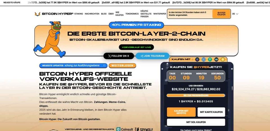 Bitcoin Hyper (HYPER) spielt genau in diesem Umfeld eine Rolle, in dem der Bitcoin Kurs heftig schwankt und alle überlegen, ob sie nachkaufen, halten oder rausgehen. Statt Hype auf den nächsten Moonshot kannst du HYPER als Baustein in einer klaren Strategie sehen. Zum Beispiel als Coin, den du bewusst in Phasen akkumuliert hast, in denen der Markt übertreibt, während du Bitcoin selbst eher als Kernposition betrachtest. HYPER eignet sich dabei vor allem für Anleger, die bewusst etwas mehr Renditepotenzial suchen, aber nicht komplett ins reine Meme Zocken abrutschen wollen.