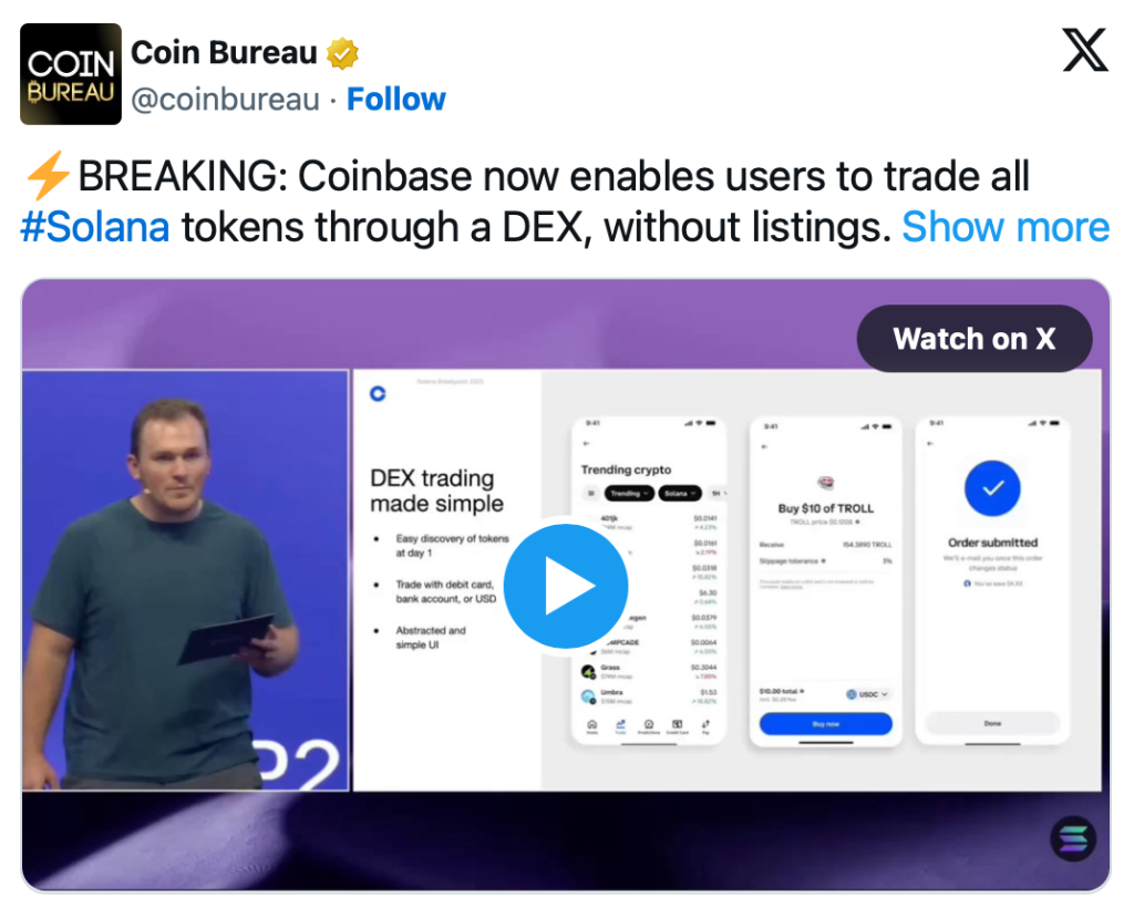 Mit der neuen Funktion ermöglicht Coinbase den direkten On-Chain-Handel sämtlicher Solana-Tokens. Die Ausführung erfolgt über dezentrale Börsen, wodurch Nutzer nicht mehr ausschließlich auf zentrale Orderbücher angewiesen sind. Stattdessen greifen sie auf bestehende Liquiditätspools im Solana-Netzwerk zu und profitieren von höherer Transparenz sowie einer deutlich größeren Auswahl an Assets.