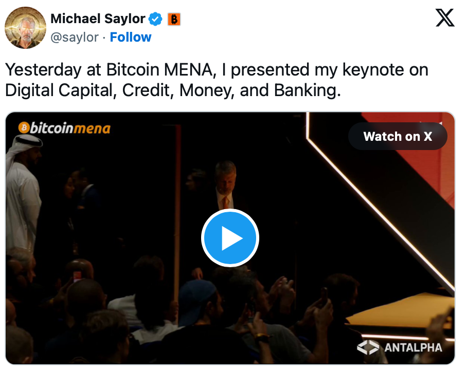 Michael Saylor ist seit Jahren für seine kompromisslose Bitcoin-Überzeugung bekannt. Auch zuletzt bekräftigte er diese Haltung öffentlich, unter anderem auf der MENA 2025 Konferenz in Abu Dhabi. Dort erklärte er, welche Voraussetzungen erfüllt sein müssten, damit Bitcoin langfristig eine Marktkapitalisierung im zweistelligen oder sogar dreistelligen Billionenbereich erreichen könne.