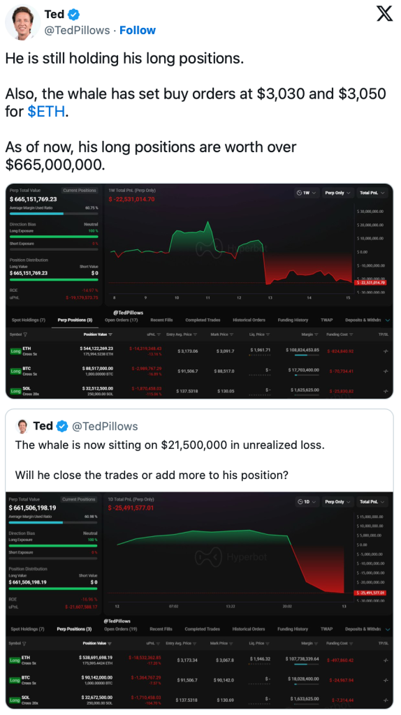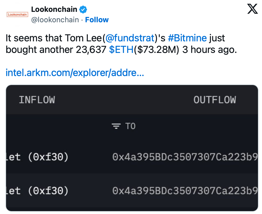 Besonders auffällig ist das Engagement von BitMine unter der Leitung von Tom Lee. Das Unternehmen hält bereits über 3 % des gesamten ETH-Bestands und plant, diesen Anteil auf rund 5 % auszubauen. Woche für Woche fließen hunderte Millionen US-Dollar in zusätzliche ETH-Käufe. Solche Positionierungen sprechen klar für langfristige Erwartungen deutlich höherer Kurse.