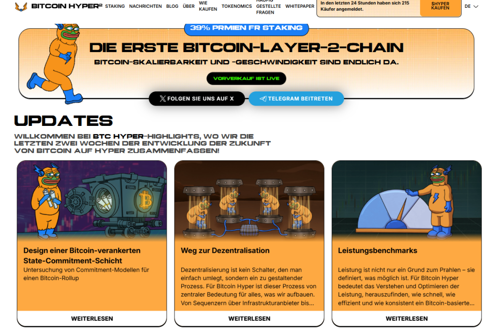 Während Bitcoin charttechnisch weiter unter Druck steht, richten einige Anleger ihren Blick auf Projekte mit langfristigem Infrastruktur-Fokus. Bitcoin Hyper ($HYPER) positioniert sich in diesem Umfeld als Layer-2-Projekt rund um das Bitcoin-Ökosystem und befindet sich aktuell im Presale kurz vor der Marke von 30 Millionen US-Dollar eingesammeltem Kapital.