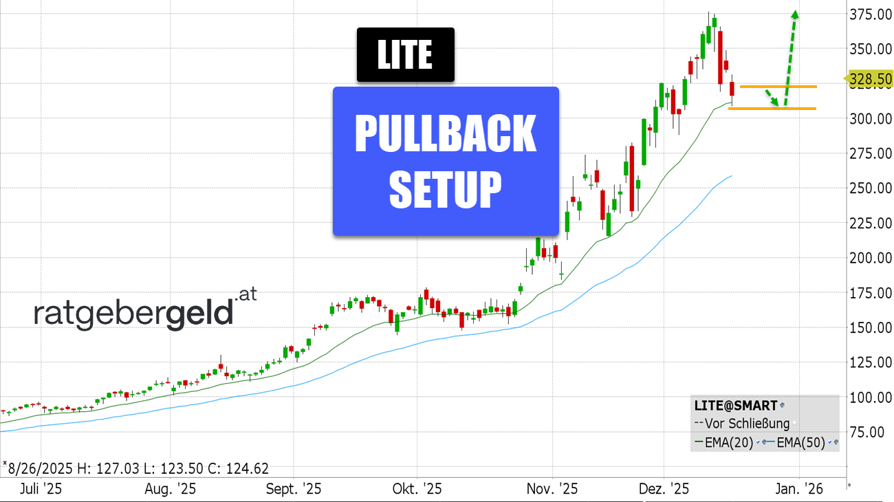 Wünschenswert wäre eine weiter Annäherung an die 20-Tagelinie, sodass die Lumentum-Aktie mit dem nächsten Bounce wieder das Allzeithoch vom 10. Dezember ansteuern könnte. Die nächsten Quartalszahlen stehen erst am 3. Februar auf der Agenda, sodass diese einem mehrwöchigen Swingtrade nicht im Wege stehen.