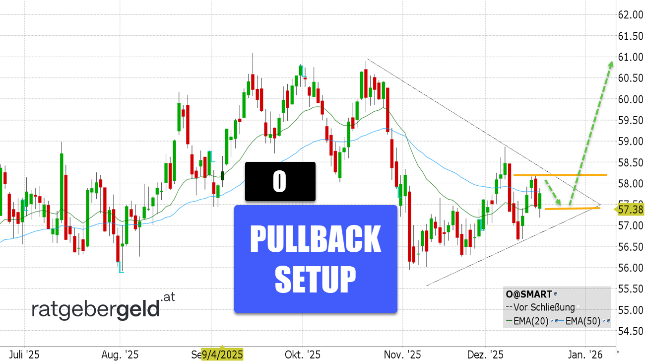 Dividendenrendite bei 5,58 Prozent! Keilformation bei Realty Income (O) - JETZT beim Immobilien-REIT einsteigen?