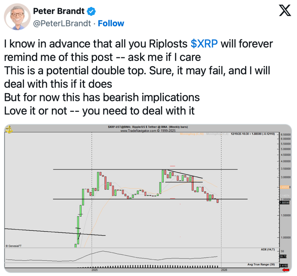 Peter Brandt sieht bärisches Doppeltop bei XRP