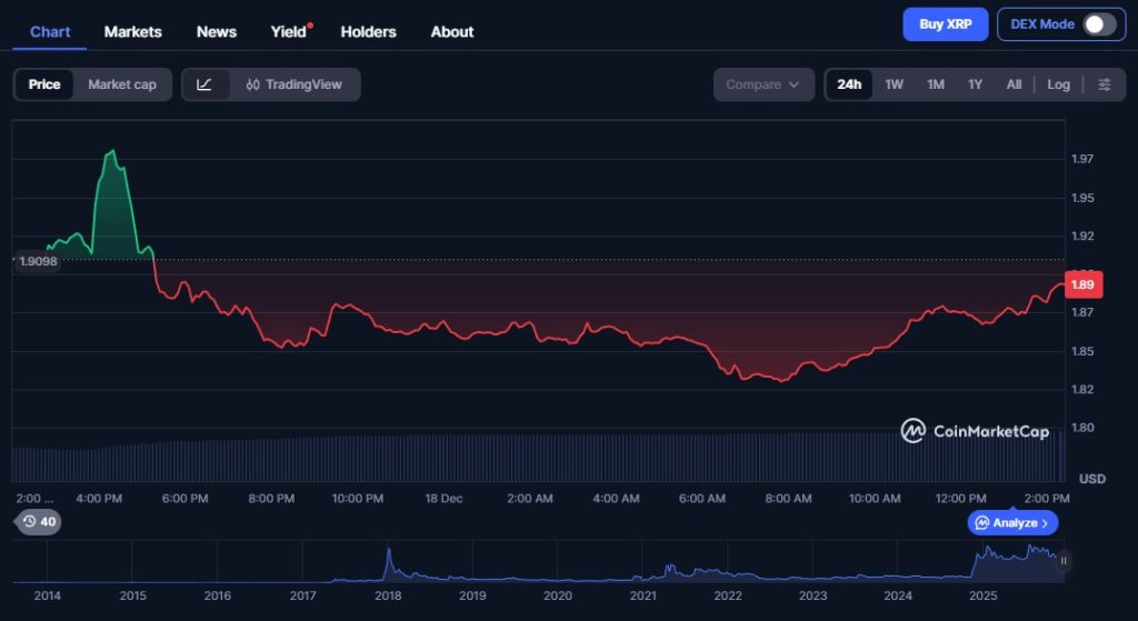 XRP Preis, 18. Dezember 2025 - Quelle: CoinMarketCap