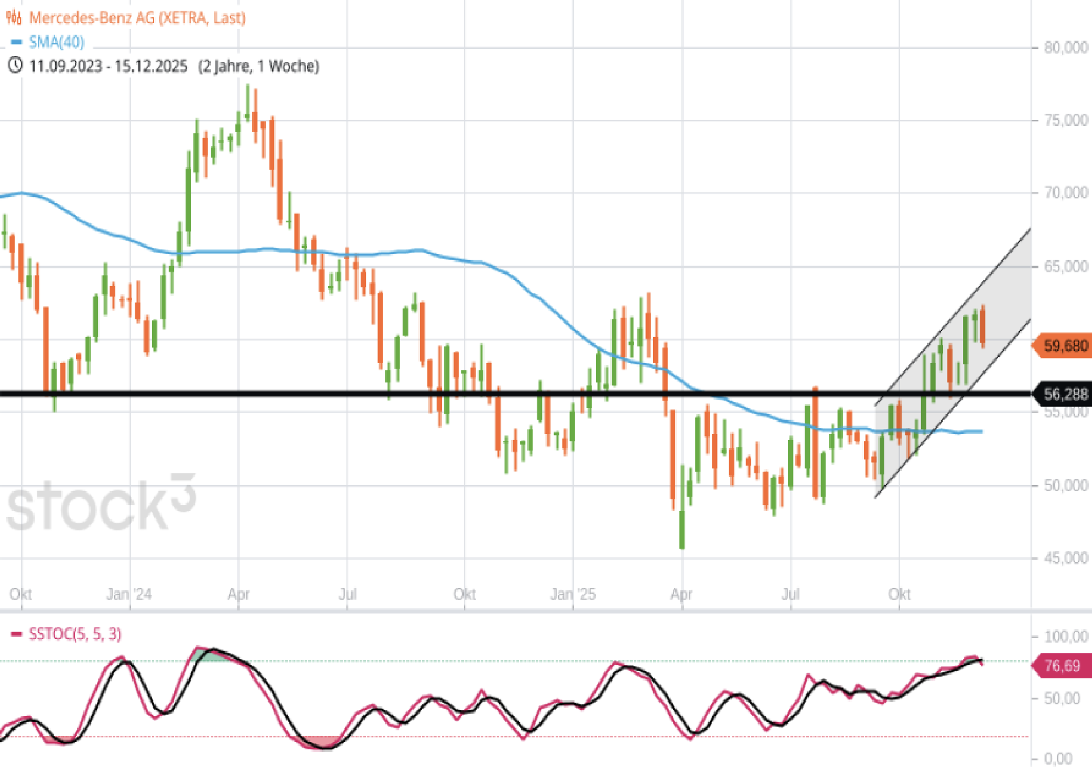 Der Autohersteller verhandelt mit der französischen Bank BNP PARIBAS über den Verkauf seiner Leasingparte Athlon.Im Rahmen der Verhandlungen wird Athlon, das über eine Flotte von 400.000 Leasingfahrzeugen verfügt, mit rund 1 Mrd. € bewertet. Durch die Übernahme würde BNP PARIBAS mit seiner Leasingsparte Arval über eine kombinierte Flotte von rund 2,3 Mio. Fahrzeugen verfügen. Europäischer Branchenführer ist AYVENS, eine Tochter der französischen Großbank SOCIÉTÉ GÉNÉRALE, mit über 2,6 Mio. Fahrzeugen im Full-Service-Leasing. MERCEDES-BENZ verschafft sich mit dem Verkauf von Athlon einen erhöhten finanziellen Spielraum im Hinblick auf die weitere Transformation des operativen Geschäfts und die Belastungen durch ein schrumpfendes China-Geschäft.