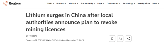 Und es bleibt nicht bei seltenen Erden. Auch im Lithium-Markt ist wieder Bewegung - diesmal nicht, weil die Nachfrage plötzlich verschwindet oder Spekulanten ein Narrativ wechseln, sondern weil China offenbar weitere Genehmigungen zurückzieht und damit zusätzliche Kapazitäten ausbremst. Wer die letzten Monate aufgepasst hat, erkennt das Muster: Der Markt war ohnehin angespannt, und sobald China an Genehmigungen, Output oder Exportrouten dreht, bekommt das Ganze sofort eine andere Dynamik. Plötzlich reicht ein politischer Hebel und die "vermeintliche Überversorgung" kippt wieder in eine Versorgungslücke.