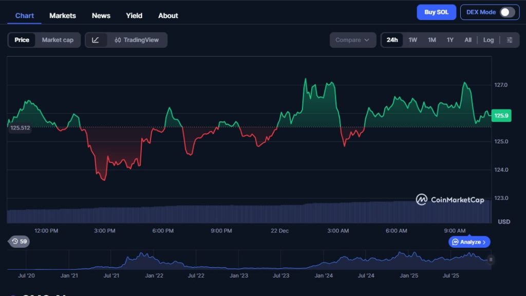 Solana ist zurück auf den Radarschirmen der Märkte, nicht wegen Hype, sondern wegen Struktur. SOL handelt Ende Dezember 2025 rund um 126 US-Dollar, mit leichten Abweichungen je nach Börse. Das ist kein Level, das FOMO auslöst, aber genau deshalb wird es für größere Player interessant. Der Markt wirkt weniger nervös, Volatilität ist gedämpfter, und Positionierung ersetzt langsam Panik. Parallel dazu hat sich die ETF-Debatte von theoretischen Szenarien hin zu realen Produkten und echten Kapitalflüssen verschoben.