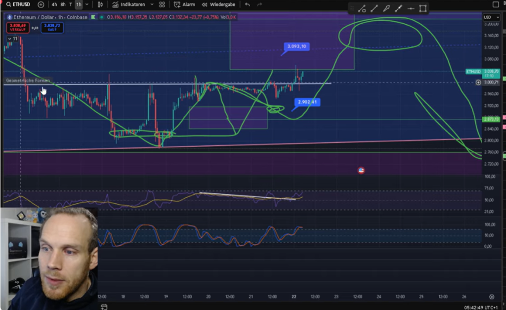Ein zentrales Signal war die Rückeroberung der Marke um 3.000 US-Dollar auf 4-Stunden-Basis, die zuvor mehrfach als Widerstand diente. Der Durchbruch markiert eine technische Verbesserung, auch wenn noch kein dynamischer Trend entstanden ist.
