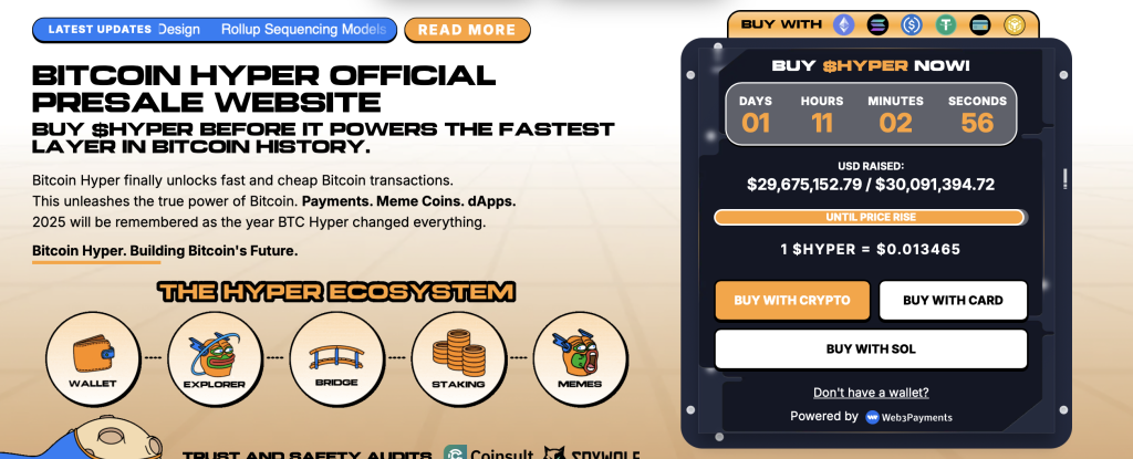 Parallel zu $HYPE rückt Bitcoin Hyper ($HYPER) in den Fokus, das Bitcoin über eine Layer-2-Lösung erweitert für ein transparentes, community-orientiertes Ökosystem. Es verbindet Bitcoins Sicherheit mit moderner Skalierbarkeit für neue Anwendungsfälle.