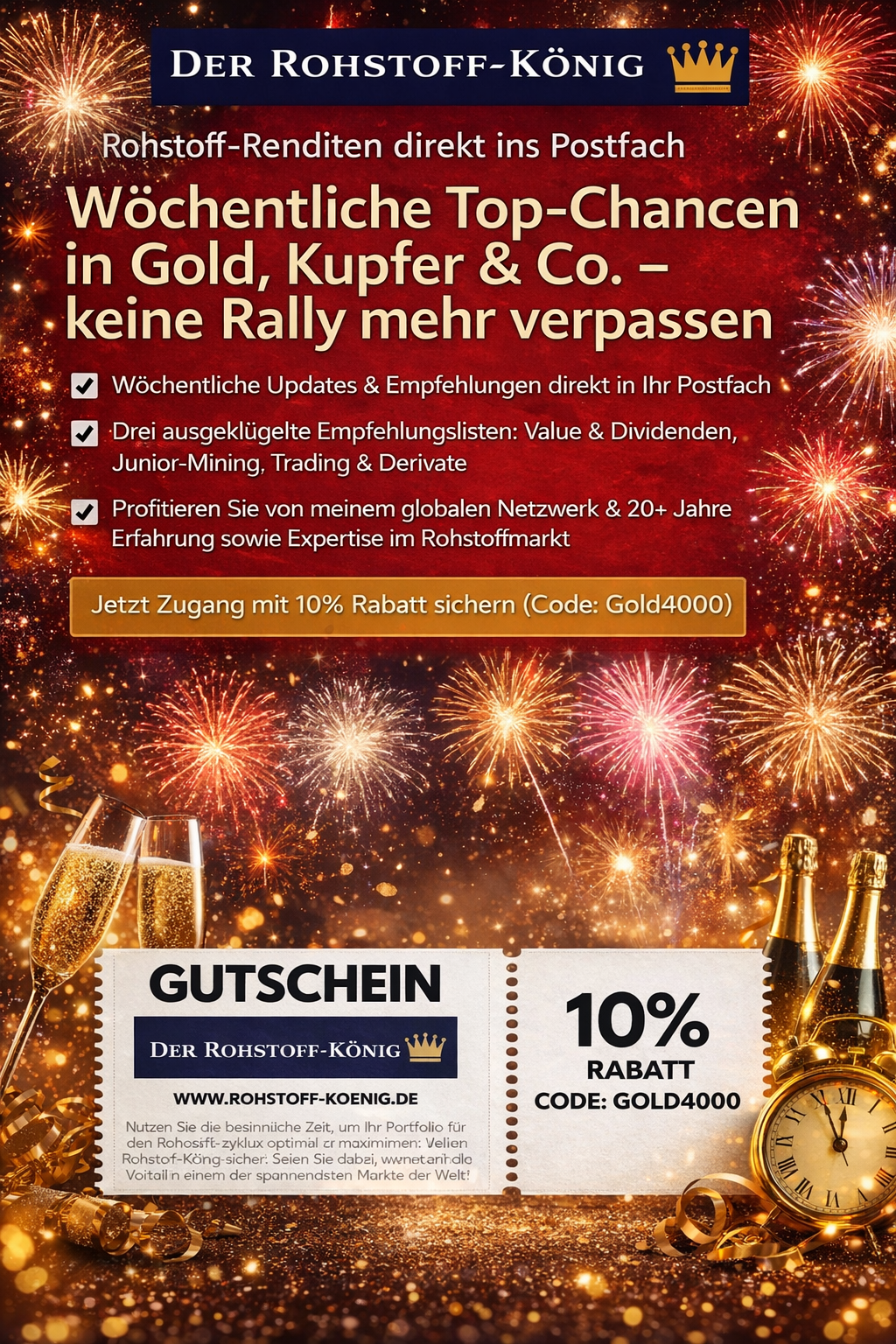 Wer 2026 nicht raten, sondern gezielt handeln will, nutzt diese Gelegenheit - denn wenn sich das Rohstoff-König-Abo durch einen einzigen guten Trade amortisiert, ist das der wohl angenehmste "Neujahrsbonus", den man sich selbst, Geschäftspartnern oder guten Freunden schenken kann.