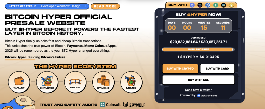 Das Projekt entwickelt eine Layer-2-Lösung, die Bitcoin mit schnellen, günstigen Transaktionen und DeFi-Funktionalität ausstattet, ohne die Sicherheit des Bitcoin-Netzwerks aufzugeben. Aktuell befindet sich $HYPER noch im Vorverkauf, wobei bereits rund 30 Millionen Dollar investiert wurden.