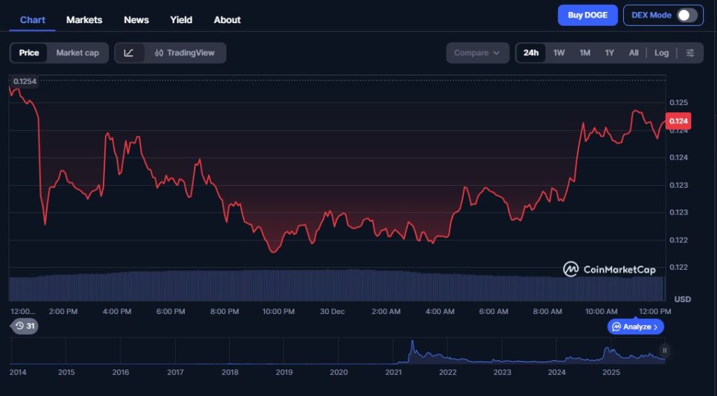 Dogecoin preis, 30. dezember 2025 - Quelle: CoinMarketCap