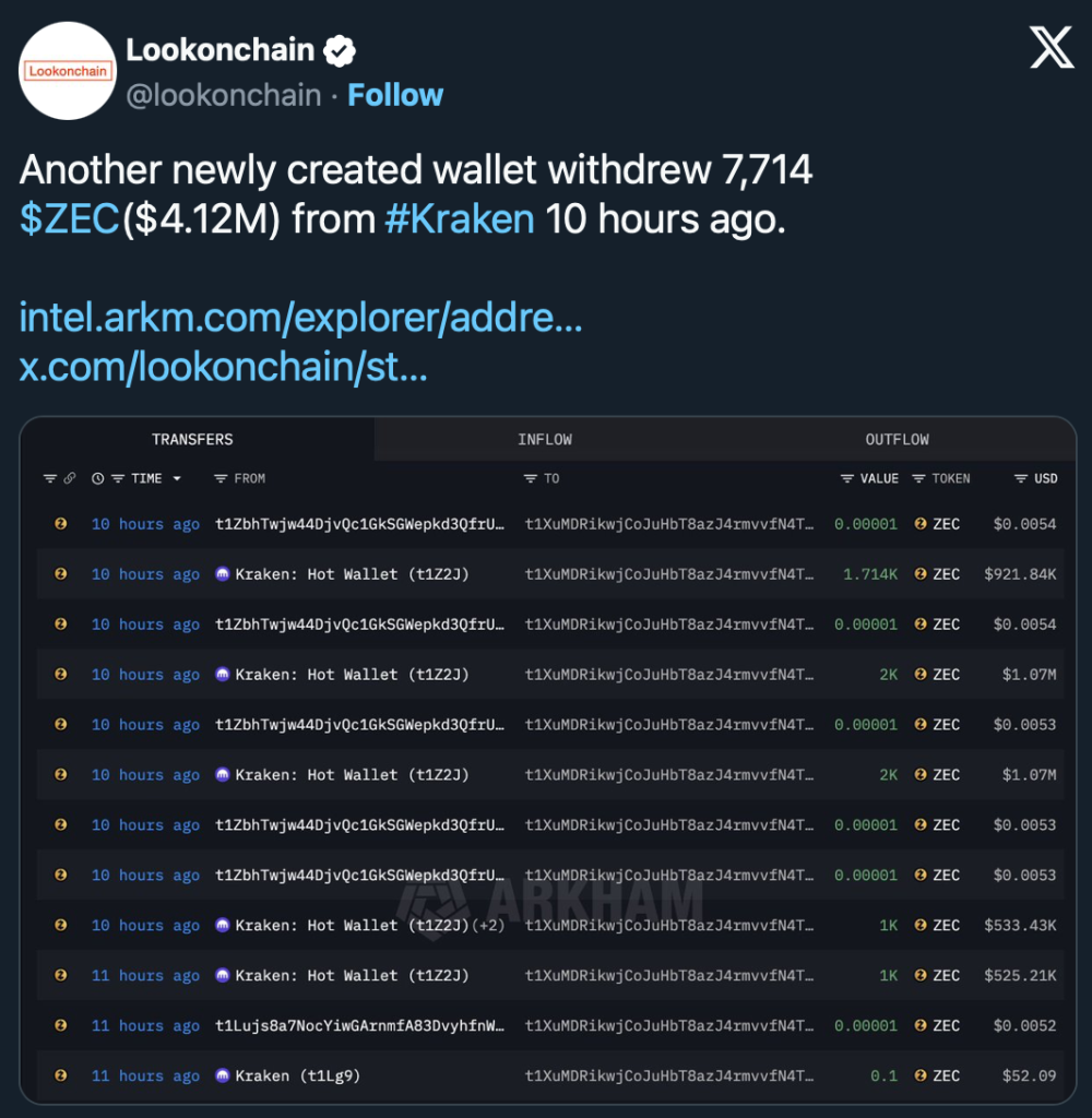 Großinvestoren akkumulieren derzeit massiv Zcash. In den letzten 48 Stunden wurden über 33.000 ZEC im Wert von mehr als 17 Millionen US-Dollar von Börsen wie Binance und Kraken in neue Wallets transferiert. Solche Abflüsse signalisieren langfristige Positionen und reduzieren das kurzfristig verfügbare Angebot, was den Preis nach oben treibt.