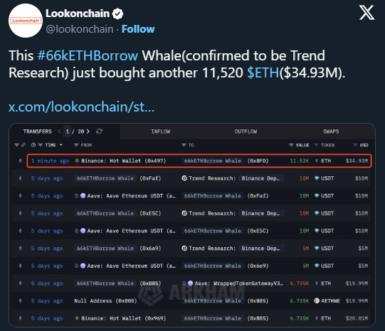 Die in Hongkong ansässige Investmentfirma Trend Research hat ihre ETH-Bestände deutlich erweitert und hält nun über 600.000 Ether, was sie zu einem der größten nicht börsennotierten Halter macht.