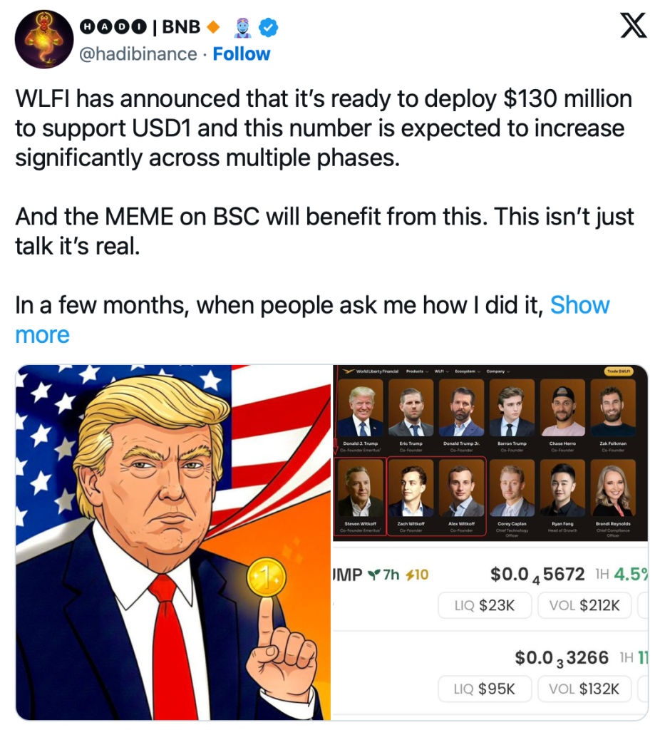 Die hohe Zustimmung zeigt Glauben an Wachstum durch aktive Treasury-Nutzung. Nach der Ankündigung stiegen USD1-nahe Token wie $SPSC, $AOL und $GP, was als bullisches Signal für Adoption und Aktivität gewertet wird.