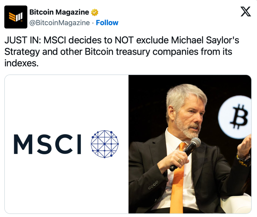Hintergrund der Überlegungen war die extreme Konzentration von MicroStrategy auf Bitcoin, was MSCI dazu veranlasste, die Eignung des Unternehmens für klassische Aktienindizes zu hinterfragen. Die Führungsebene von MicroStrategy hielt mit einer historisch angehauchten Argumentation dagegen: Bitcoin heute zu beschränken, sei so kurzsichtig, wie Investitionen in Ölplattformen oder Mobilfunkmasten in deren jeweiligen Pionierphasen zu blockieren.