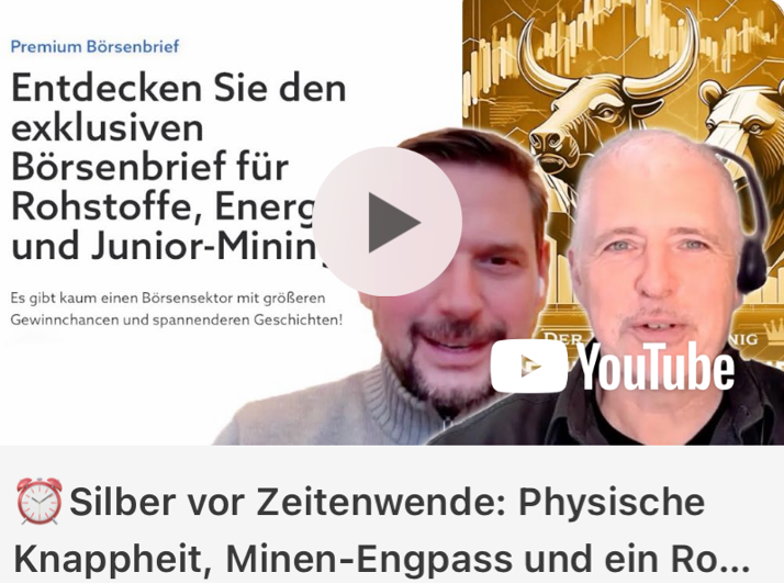 Disclaimer: Keine Anlageberatung. Rohstoffmärkte und Mining-Aktien sind volatil, es bestehen erhebliche Risiken bis hin zum Totalverlust. Dieser Beitrag bewirbt ein Video zu Rohstoff-/Silbermärkten und dient der Information. Keine Anlageberatung.