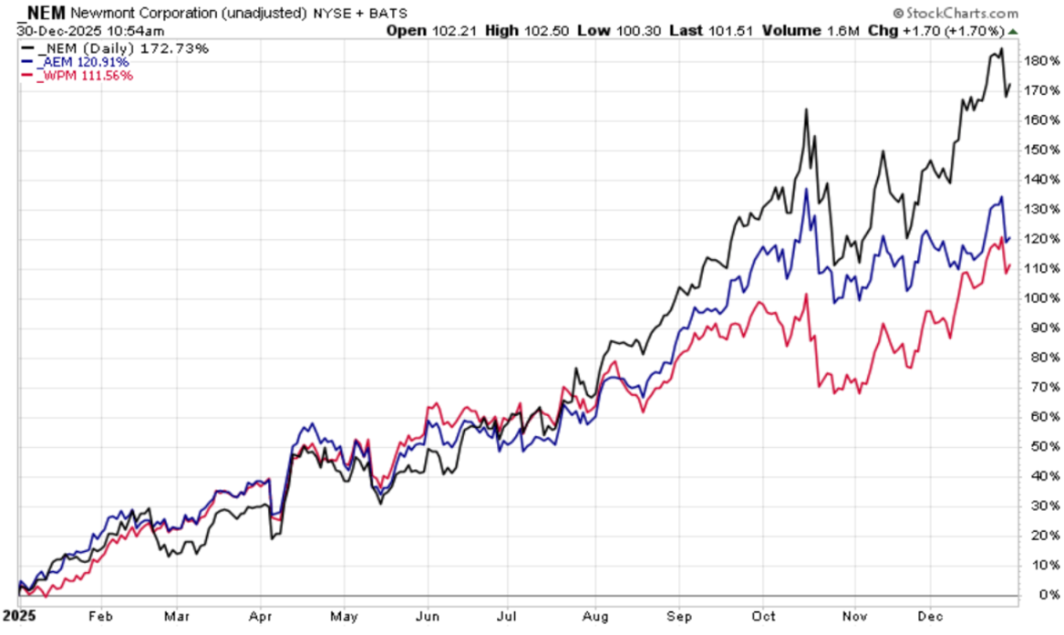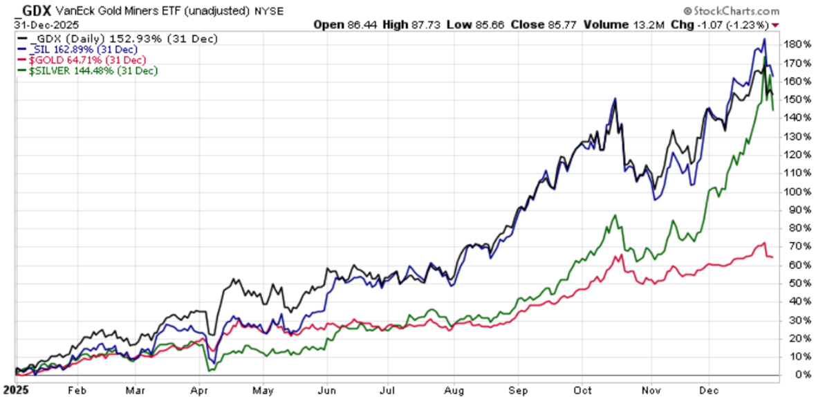 Goldminenunternehmen haben im Jahr 2025 sowohl Gold wie auch alle US-Large-Cap-Sektoren übertrumpft: