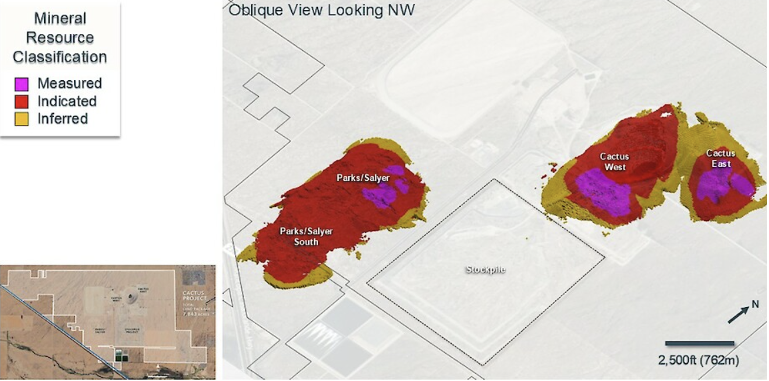 Insgesamt verfügt die Firma über 11 Mrd. Pfund Kupfer (gemessen und angezeigt) mit einem Gehalt von 0,48% Cu aus den Lagerstätten Parks/Salyer, Cactus West, Cactus East und dem Lagerstock.