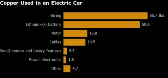In Summe werden in einem Elektroauto durchschnittlich 77,5 kg Kupfer verbaut, etwa viermal so viel wie in einem vergleichbaren Verbrennermodell.
