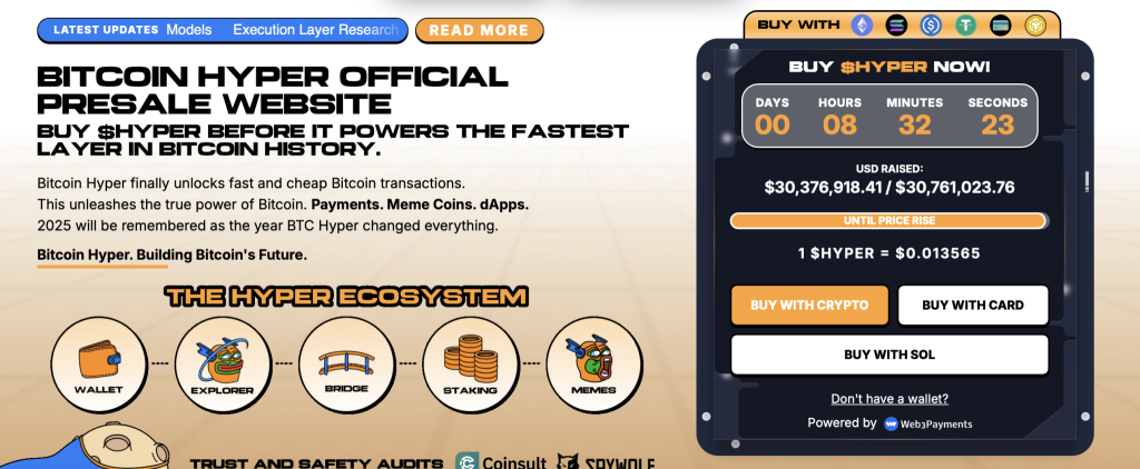 Der $HYPER-Token bildet das wirtschaftliche Rückgrat der Hyper Chain und wird für Transaktionsgebühren, Staking und Governance benötigt. Der Presale hat bereits mehr als 30 Millionen US-Dollar umgesetzt und zeigt starkes frühes Interesse.
