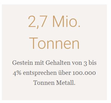Gestein mit Gehalten von 3 bis 4% entsprechen über 100.000 Tonnen Metall.