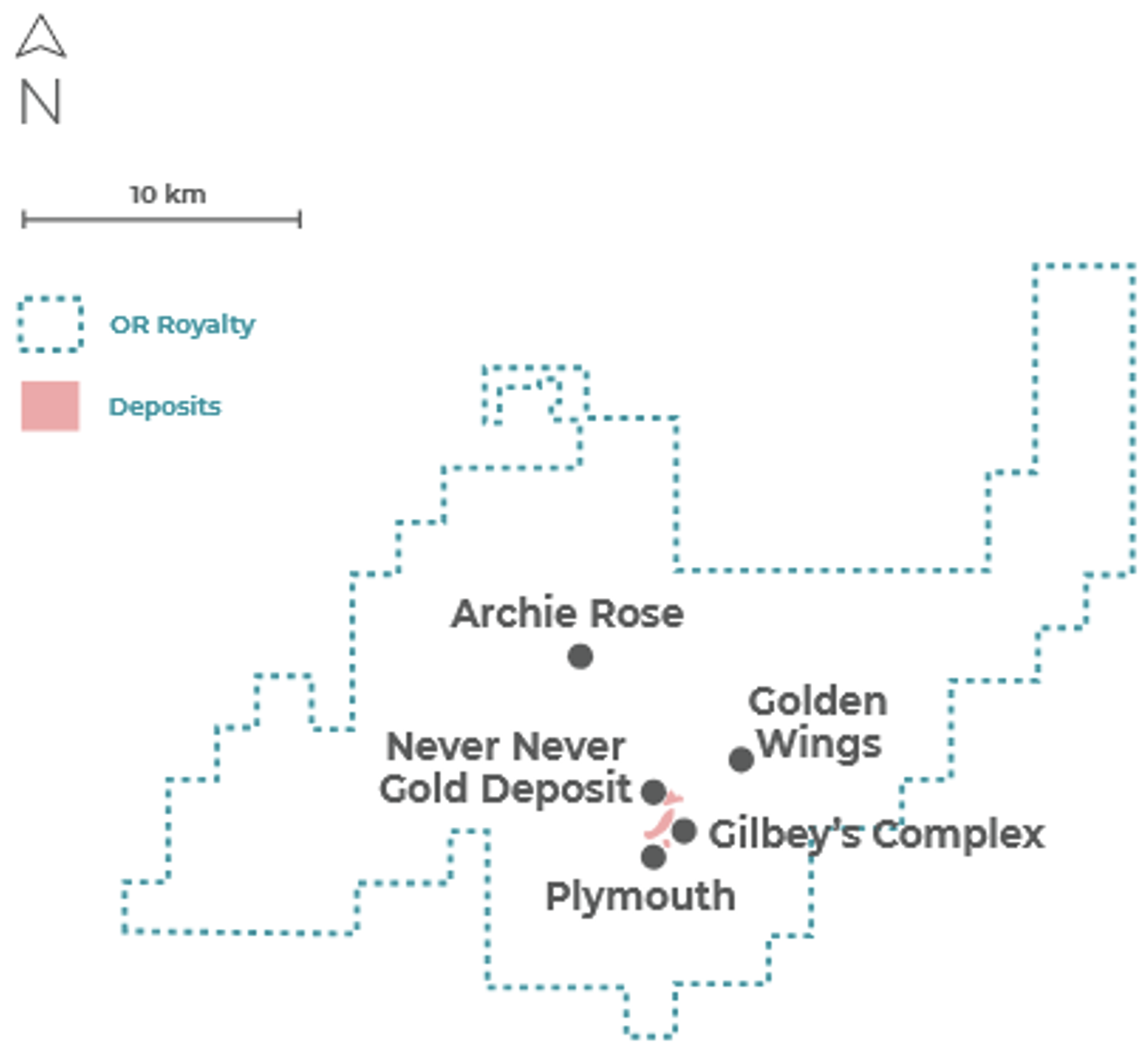Die Machbarkeitsstudie (Februar 2025) sieht eine Lebensdauer von >10 Jahren mit durchschnittlich >300.000 Unzen/Jahr vor, in den ersten fünf Jahren sogar 348.000 Unzen/Jahr. OR Royalties hält 2,5 bis 3,0% NSR auf den Kern der Lagerstätte plus 0,5% auf periphere Claims. Die 3,0%-Royalty wird fällig, sobald 500.000 Unzen produziert wurden.