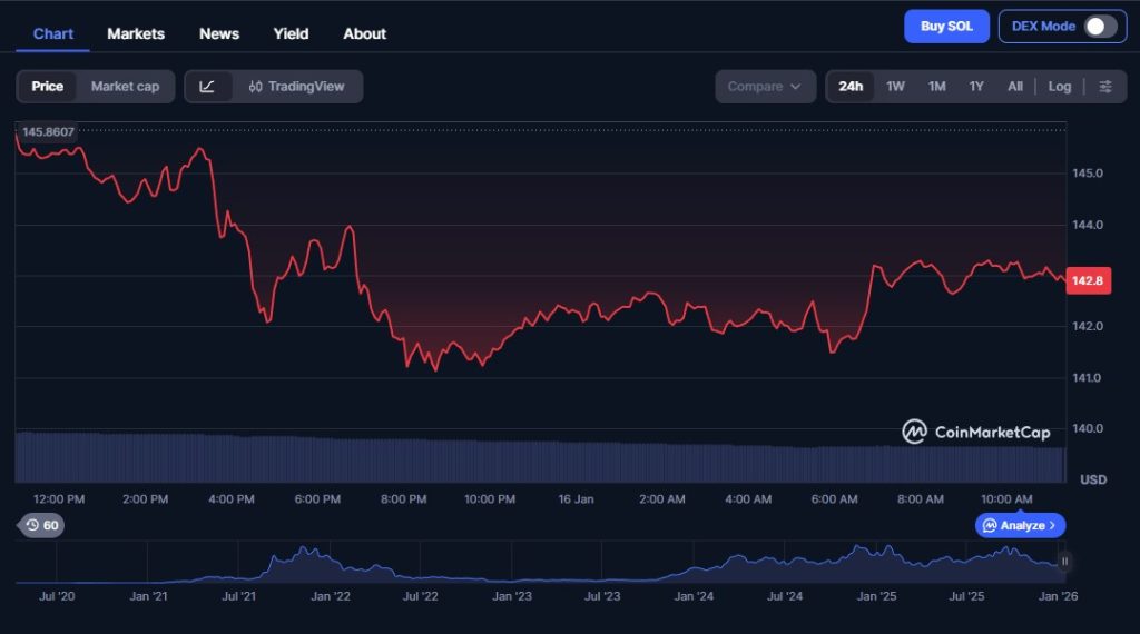 Solana preis, 16. januar 2026 - Quelle: CoinMarketCap