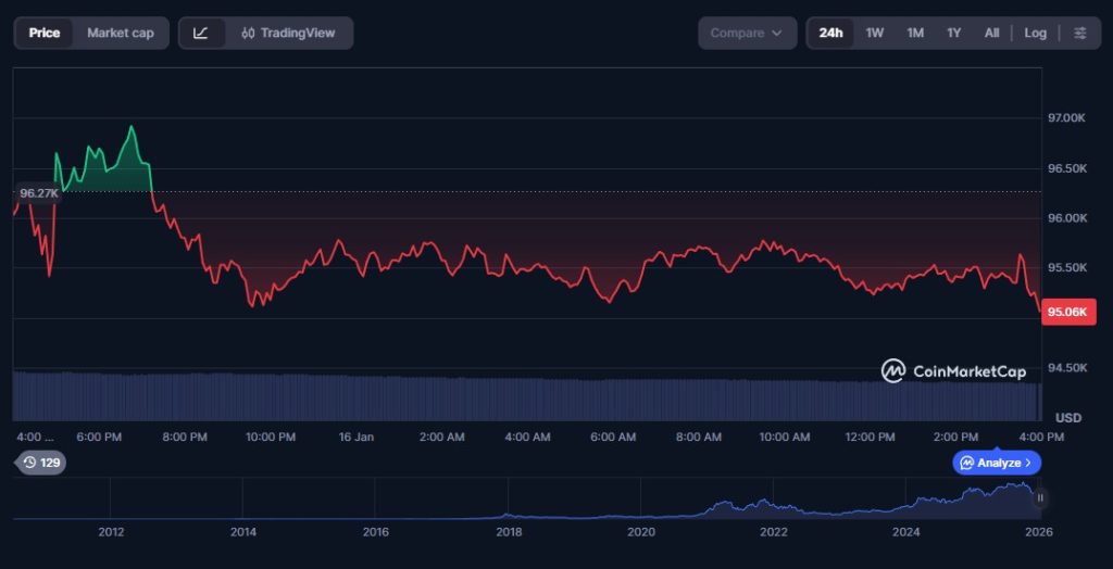 Bitcoin preis performance, 17. januar 2026 - Quelle: CoinMarketCap