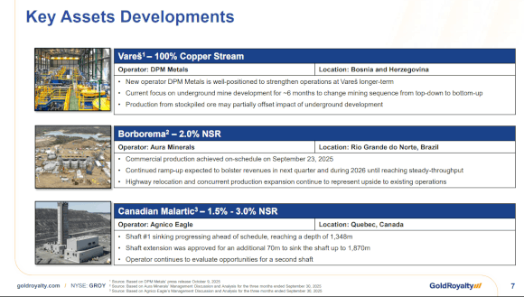 - Portfolio-Betrachtung: Gold Royalty ist jetzt schuldenfrei und situiert sich als reiner, wachstumsorientierter Royalty-Play mit Exposure zu Gold und Kupfer.