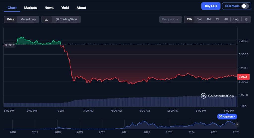Ethereum preis, 19, januar 2026 - Quelle: CoinMarketCap