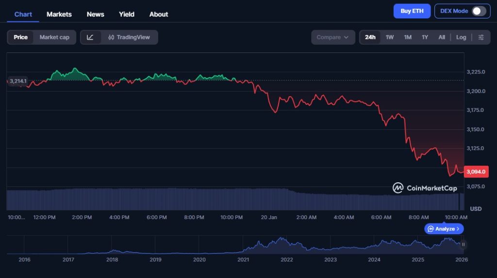 Ethereum preis, 20. januar 2026 - Quelle: CoinMarketCap