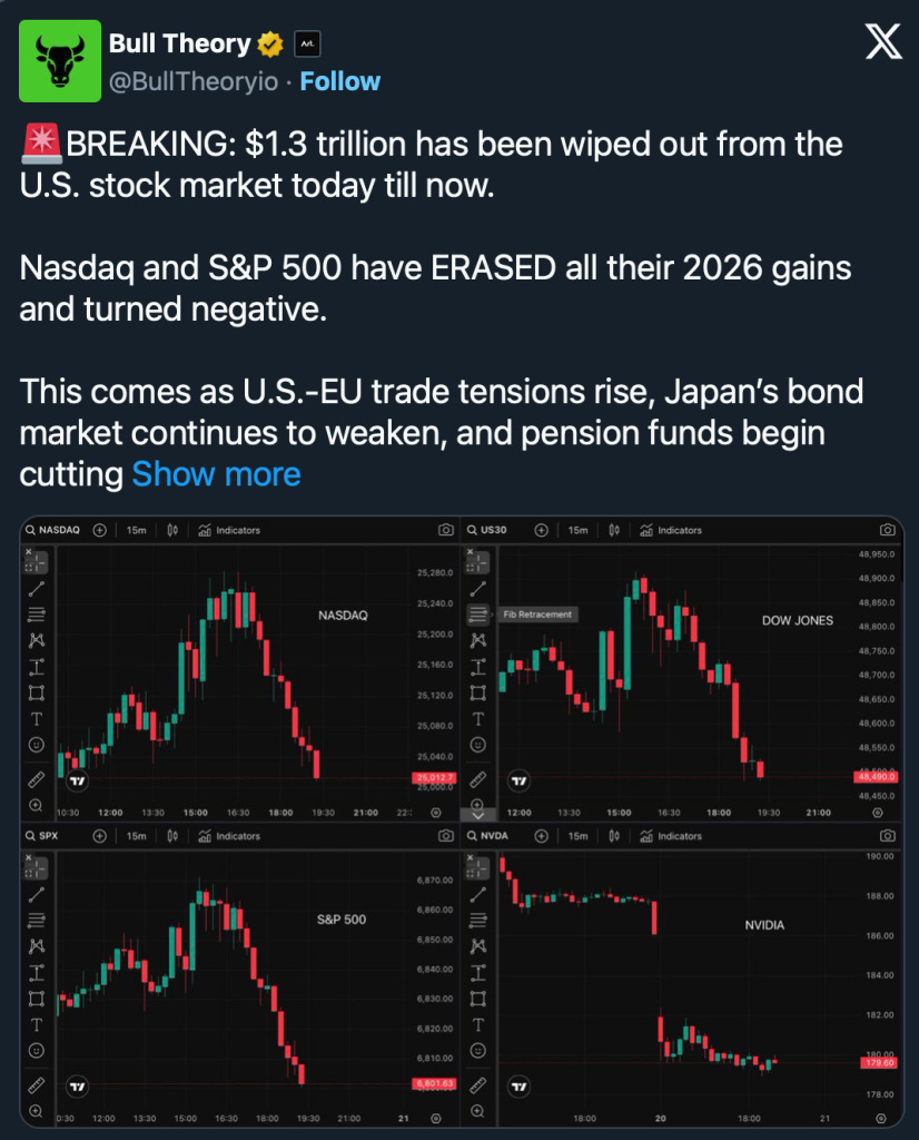 Die Marktpanik wurde durch eine einzige politische Ankündigung ausgelöst: US-Präsident Donald Trump erklärte, dass die USA ab dem 1. Februar 10-prozentige Strafzölle auf Waren aus acht europäischen Ländern verhängen werden, darunter Deutschland, Frankreich, die Niederlande, Finnland und Schweden. Ziel ist es, Dänemark zu einem Verkauf oder einer Abtretung Grönlands zu zwingen.