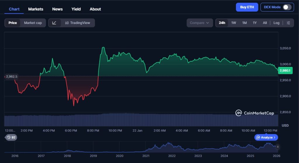 Ethereum preis, 22. januar 2026 - Quelle: CoinMarketCap
