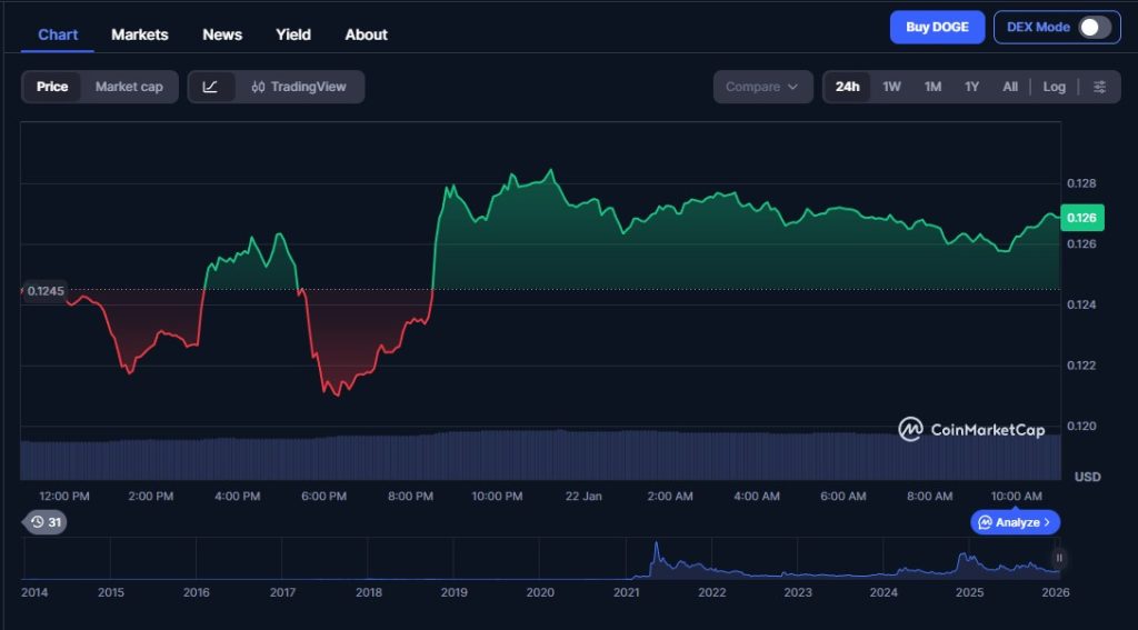 Dogecoin preis, 22. januar 2026 - Quelle: CoinMarketCap
