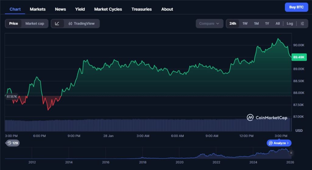 Bitcoin preis, 28. januar 2026 - Quelle: CoinMarketCap