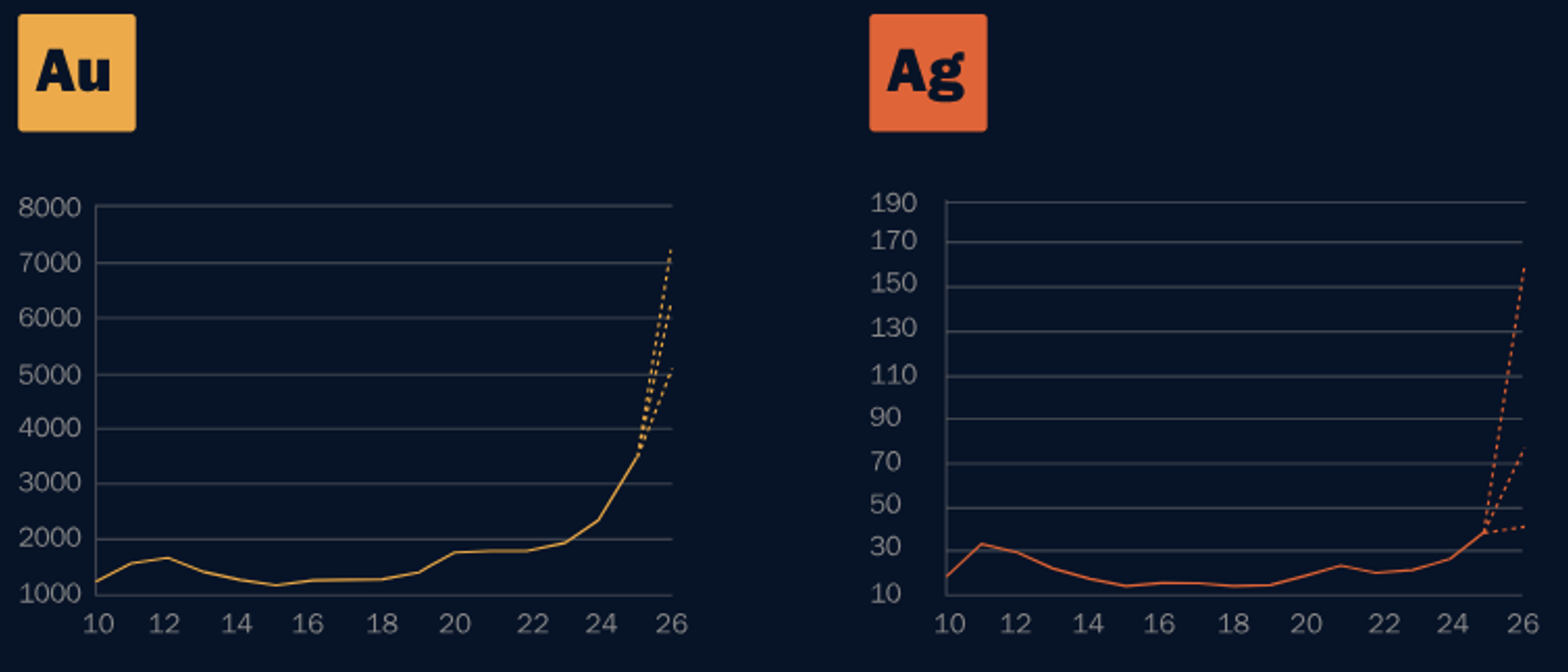 Strukturelles Defizit bleibt bestehen: Die Analysten der Schweizer Großbank UBS schätzen, dass das Silberdefizit dieses Jahr 293 Millionen Unzen erreichen könnte1, verglichen zu etwa 118 Millionen Unzen in 2025. Während nämlich die industrielle Nachfrage weiter zunimmt und auch immer mehr Investoren nach Silber schielen, stagniert andererseits die Produktion.