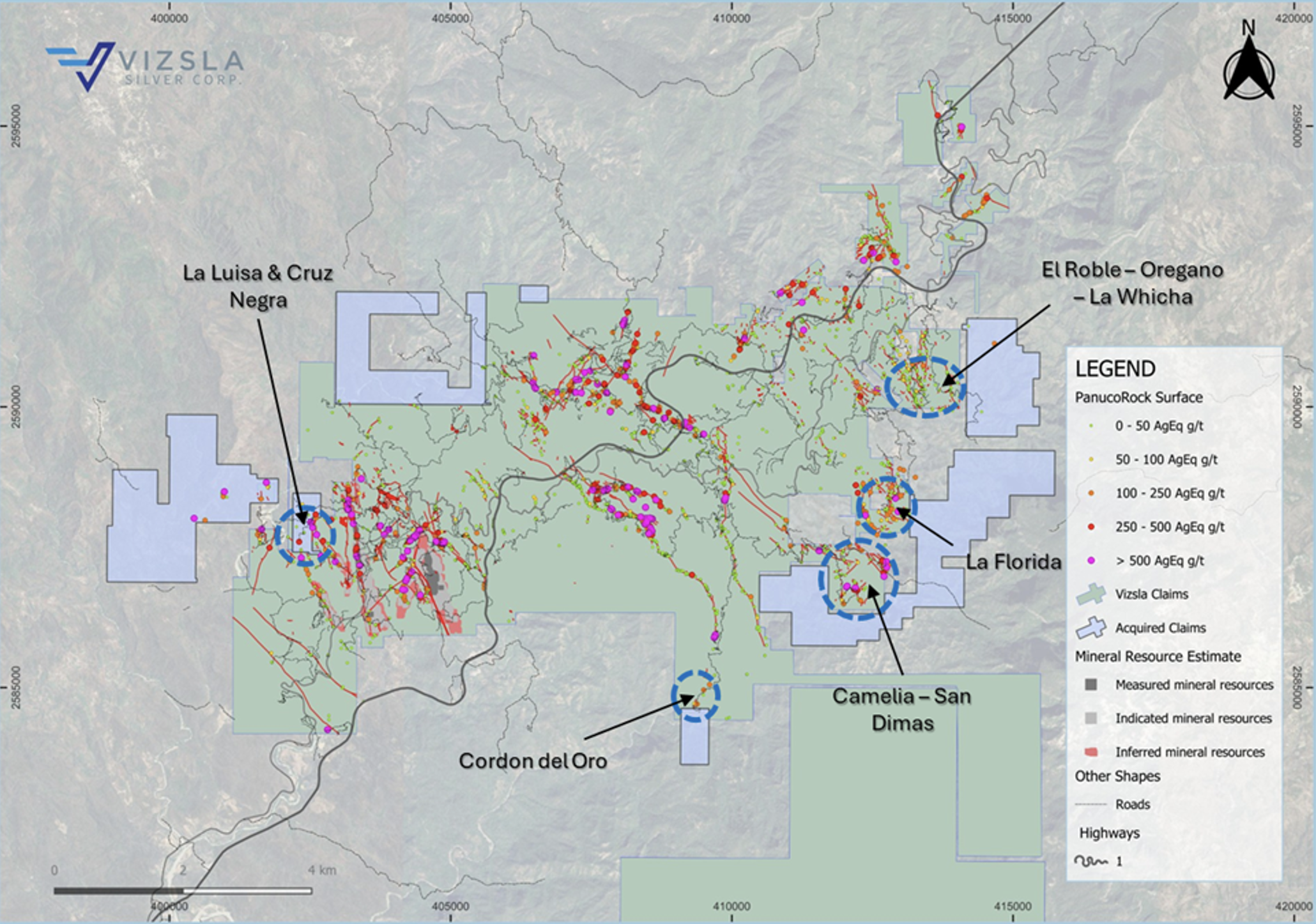 Um die an sich schon rekordverdächtige Ressourcenbasis von "Panuco' zu vergrößern und auch die Wirtschaftlichkeit der geplanten Mine weiter zu optimieren, hat sich Vizsla (WKN: A40EG3) kurz vor Weihnachten praktisch selbst ein hochgradiges Geschenk unter den Baum gelegt und ein Paket von insgesamt zehn an "Panuco' angrenzende "Claims' mit einer Fläche von 2.378 Hektar von Fresnillos Tochtergesellschaft Minera Fresnillo S.A. gekauft.