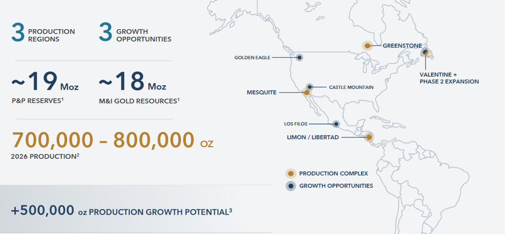 Diversifizierte Produzenten wie Equinox Gold (WKN: A2PQPG) profitieren von dieser strategischen Neuausrichtung. Mit der "Greenstone'-Goldmine in Ontario und der "Valentine'-Goldmine in Neufundland und Labrador verfügt Equinox Gold über zwei produzierende Anlagen in Kanada in seinem Portfolio. Mit der Produktion aus diesen beiden kanadischen Minen sowie den in Betrieb befindlichen Minen in Nicaragua und Kalifornien rechnet das Unternehmen für 2026 mit einer Produktion von 700.000 bis 800.000 Unzen Gold. Gleichzeitig treibt Equinox Gold drei vielversprechende Wachstumsprojekte in Kanada, Mexiko und den USA voran, die in den nächsten Jahren zusammen ein weiteres Produktionswachstum von 450.000 bis 550.000 Unzen bringen könnten.