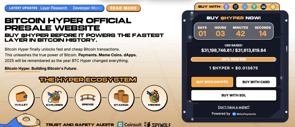 Der native $HYPER-Token befindet sich aktuell im Presale und hat bereits ein Volumen von 31 Millionen US-Dollar erreicht. Viele Beobachter rechnen nach dem Listing an Börsen und dem Mainnet-Launch mit einer starken Kursentwicklung, wie sie nach erfolgreichen Presales in der Vergangenheit häufig zu beobachten war.