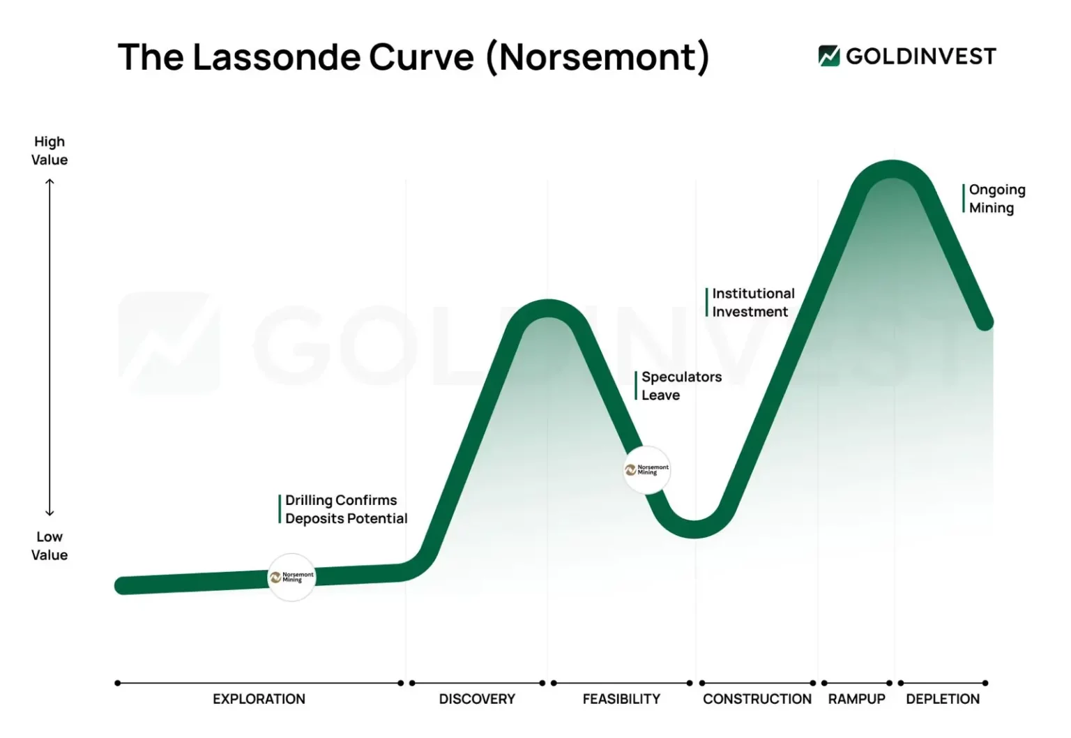 Zumal Norsemont mit Choquelimpie im Grunde genommen gleich an zwei verschiedenen vielversprechenden Punkten der berühmten Lassonde-Kurve (die die typische Bewertungsentwicklung von Rohstoffunternehmen zeigt) angesiedelt ist, was ebenfalls darauf hindeutet, dass das Unternehmen reif für eine Neubewertung sein könnte!