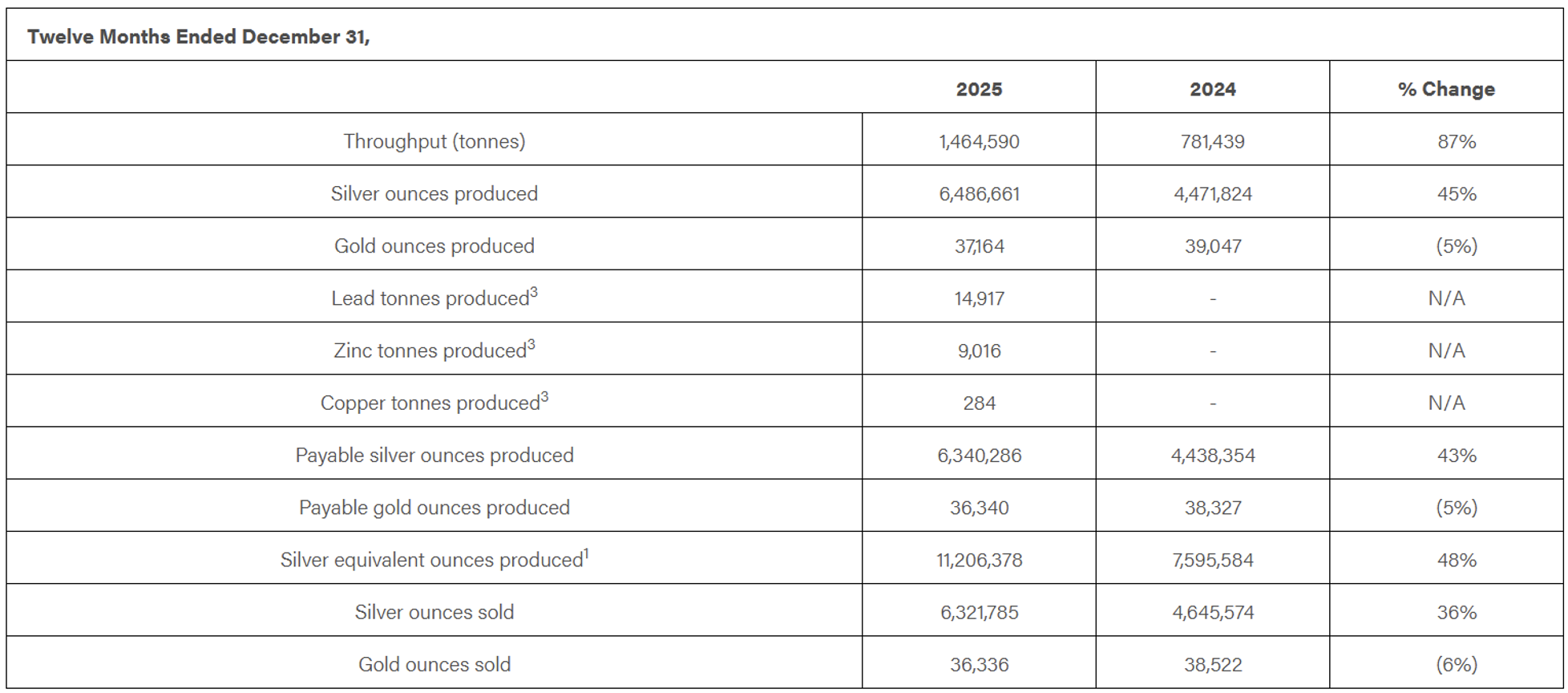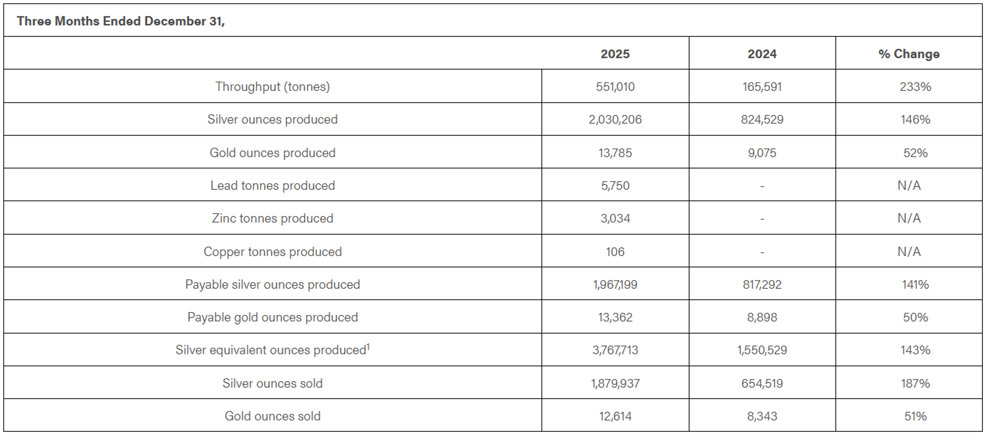 Mit dem Beginn der kommerziellen Produktion am 1. Oktober 2025, hat Endeavour Silvers (WKN: A0DJ0N) neues Zugpferd "Terronera' den Galopp-Modus gestartet und trug in Q4-2025 mit einem Durchsatz von 154.180 Tonnen insgesamt satte 352.002 Unzen Silber und 8.148 Unzen Gold zur gesamten Power-Produktion bei, mit Gehalten von im Schnitt 86 g/t Ag und 2,27 g/t Au.