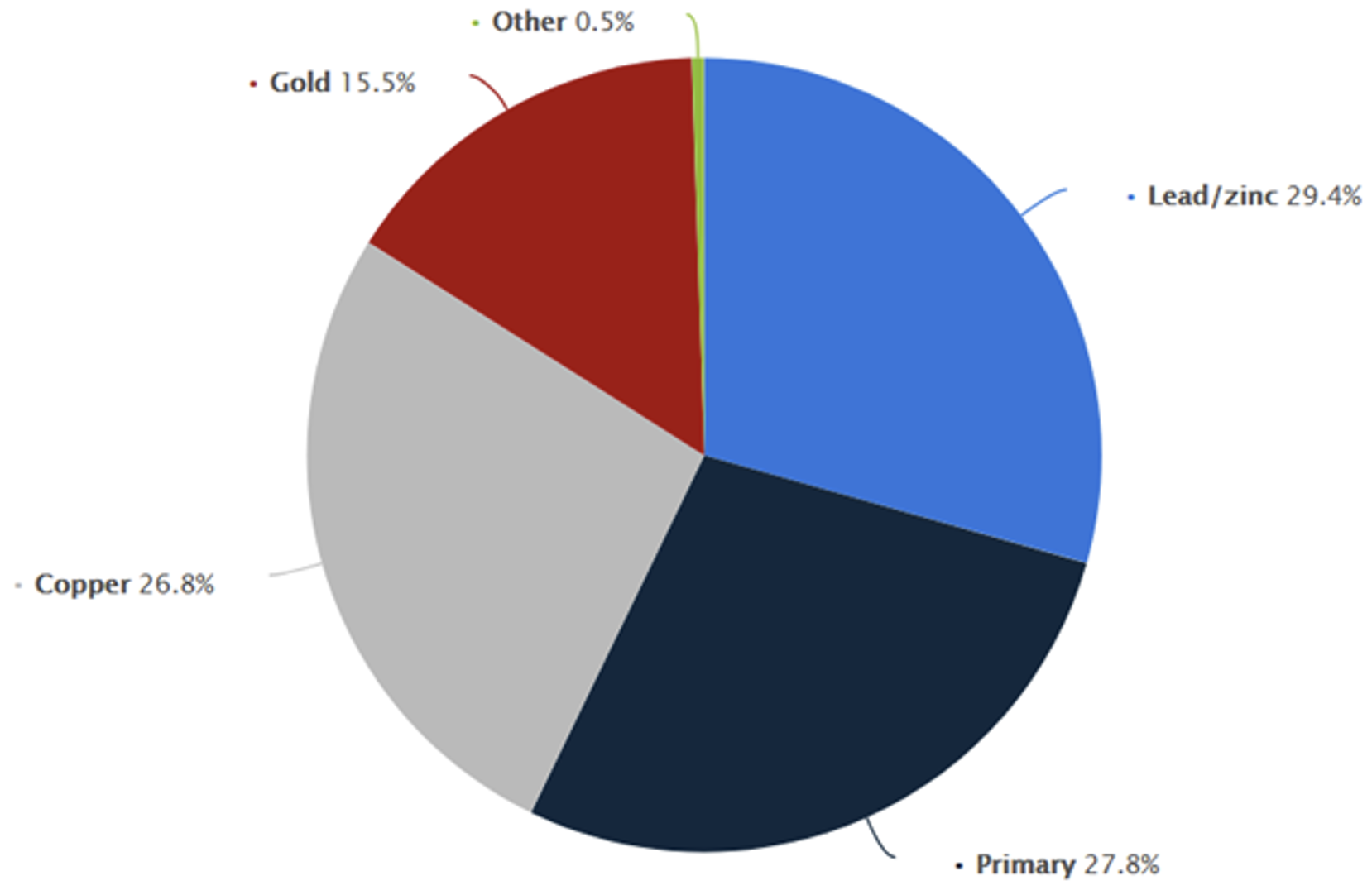 Die Verteilung der weltweiten Silberproduktion im Jahr 2024 nach Primärmetallquellen: