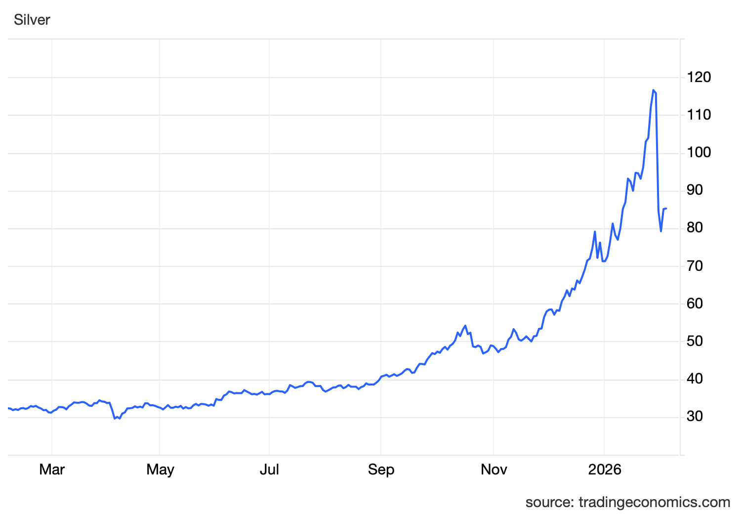 Silber ist in diesen Tagen das, was es seit jeher war: das "Cinderella-Metall", fähig zu parabolischen Läufen, aber auch zu brutalen Korrekturen. Am 29. Januar markierte der Spotpreis ein Allzeithoch von über 121,- USD je Unze. Bereits am Folgetag folgte ein Einbruch in der Spitze von mehr als 35% übrigens der schärfste Tagesrutsch in den LSEG-Daten seit Anfang der 1980er Jahre. Und doch: Nach dem Ausverkauf meldete sich das Metall sofort zurück, am 03. Februar sprang der Preis an einem Tag wieder um rund +9% auf knapp 87,- USD.