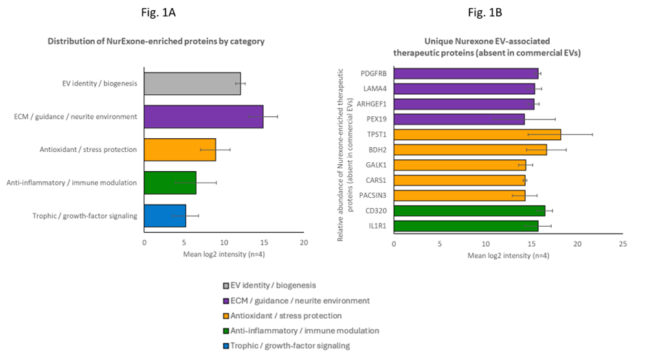 Abb. 1A-1B Die folgenden Diagramme zeigen die einzigartigen Proteine, die in den von NurExone produzierten Exosomen enthalten sind.