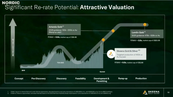 Wer mit dem Land-Curve-Modell arbeitet, weiß: vor Produktion werden Entwickler oft bei 30-40% des NPV gehandelt; mit Produktion und klarer optionalität kann ein Multiple >100% des NPV erreicht werden. Coles sagt es klar: Die größten Risiken sind seiner Ansicht nach hinter Skeena - wir stehen kurz vor dem optimalen Punkt, um Risiko gegen Rendite zu tauschen.